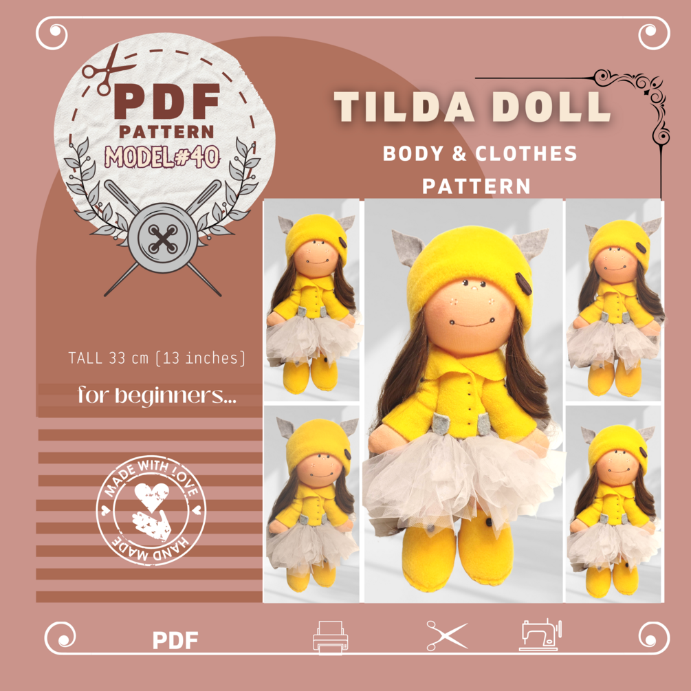 You will create a 33 cm (13 inches) textile doll (the size might vary).