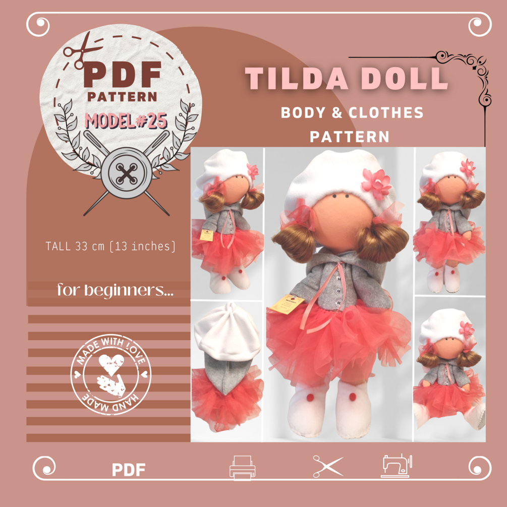 Tilda Doll Pattern for Body and Clothes, PDF Download, Model #25