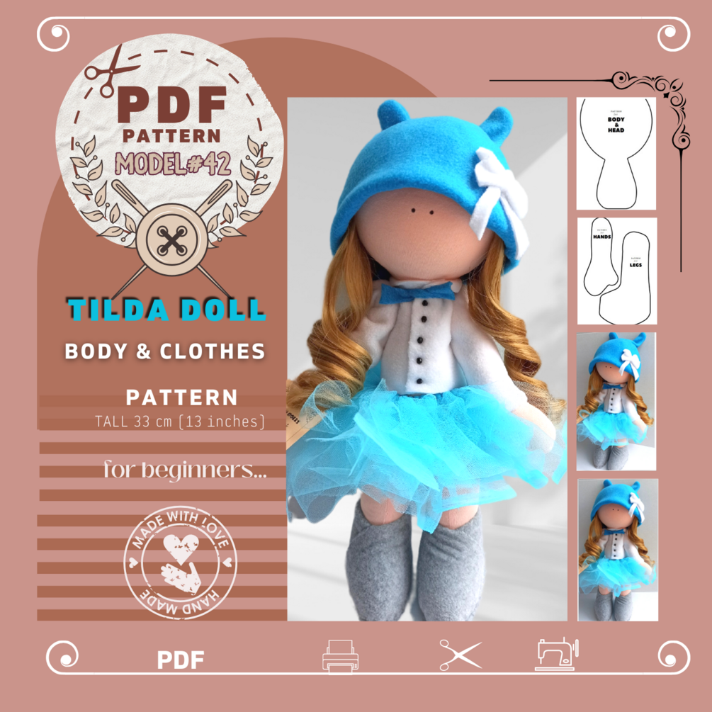 Tilda Doll Pattern for Body and Clothes, size 33 cm (13 inches)- Model #42- PDF Pattern instant Download