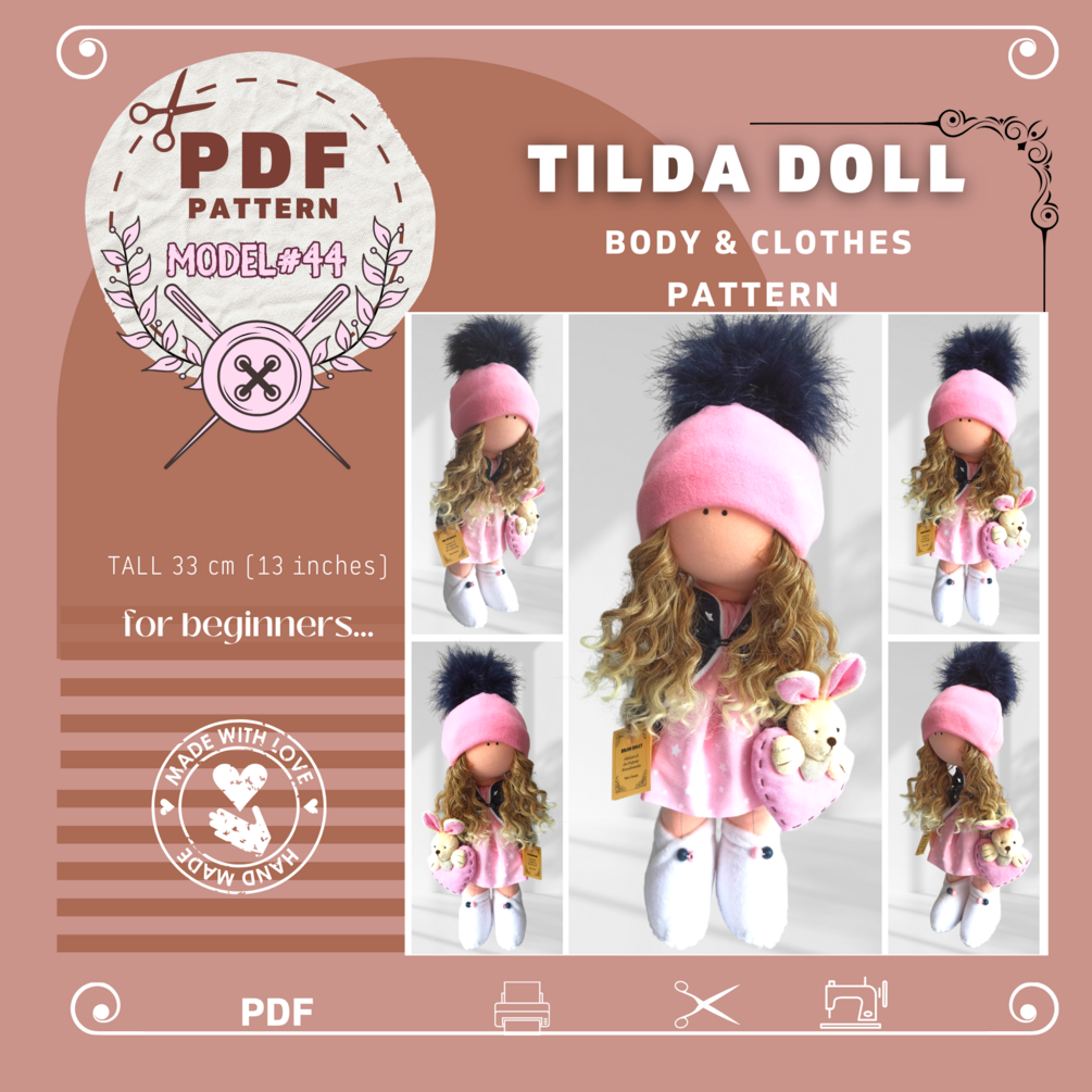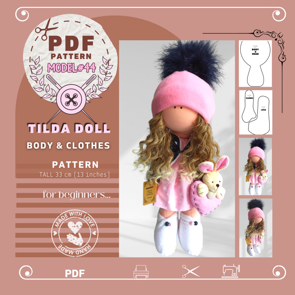 Tilda Doll Pattern for Body and Clothes, size 33 cm (13 inches)- Model #44- PDF Pattern instant Download